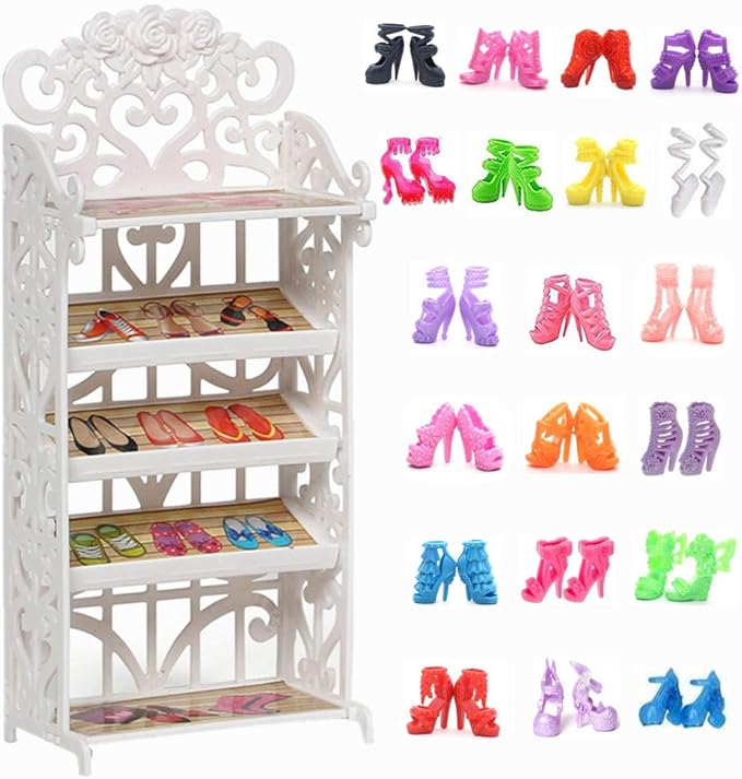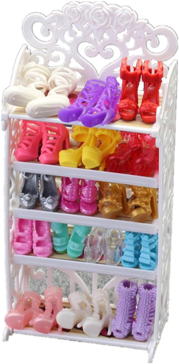 About This Package Includes 1 unassemble shoes rack and 20pairs doll shoes. This 5-layer shoe rack can dismantle. Perfect for... Read more
