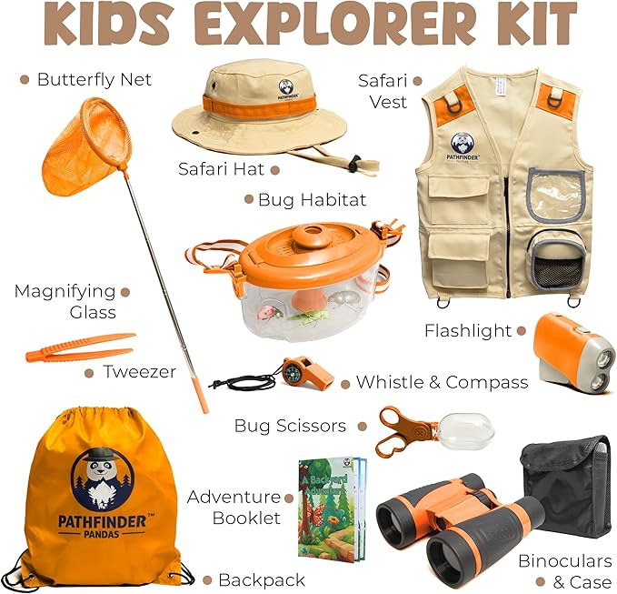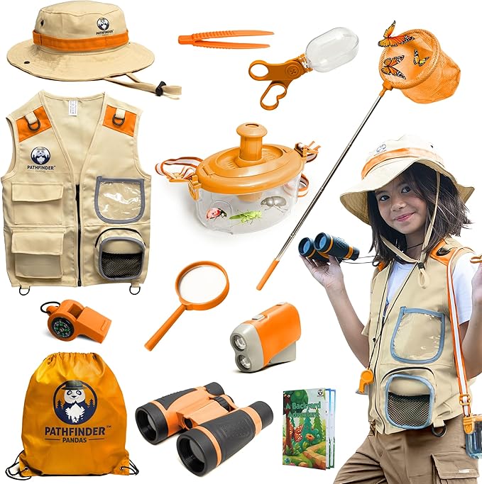 Kids Explorer Kit with Safari Vest, Hat & More - Kids Bug Catching Kit with Adventure Guide & Scavenger Hunt - Cute Dress-Up Zookeeper Costume & Safari Costume for 7-12 Year Old Boys Girls